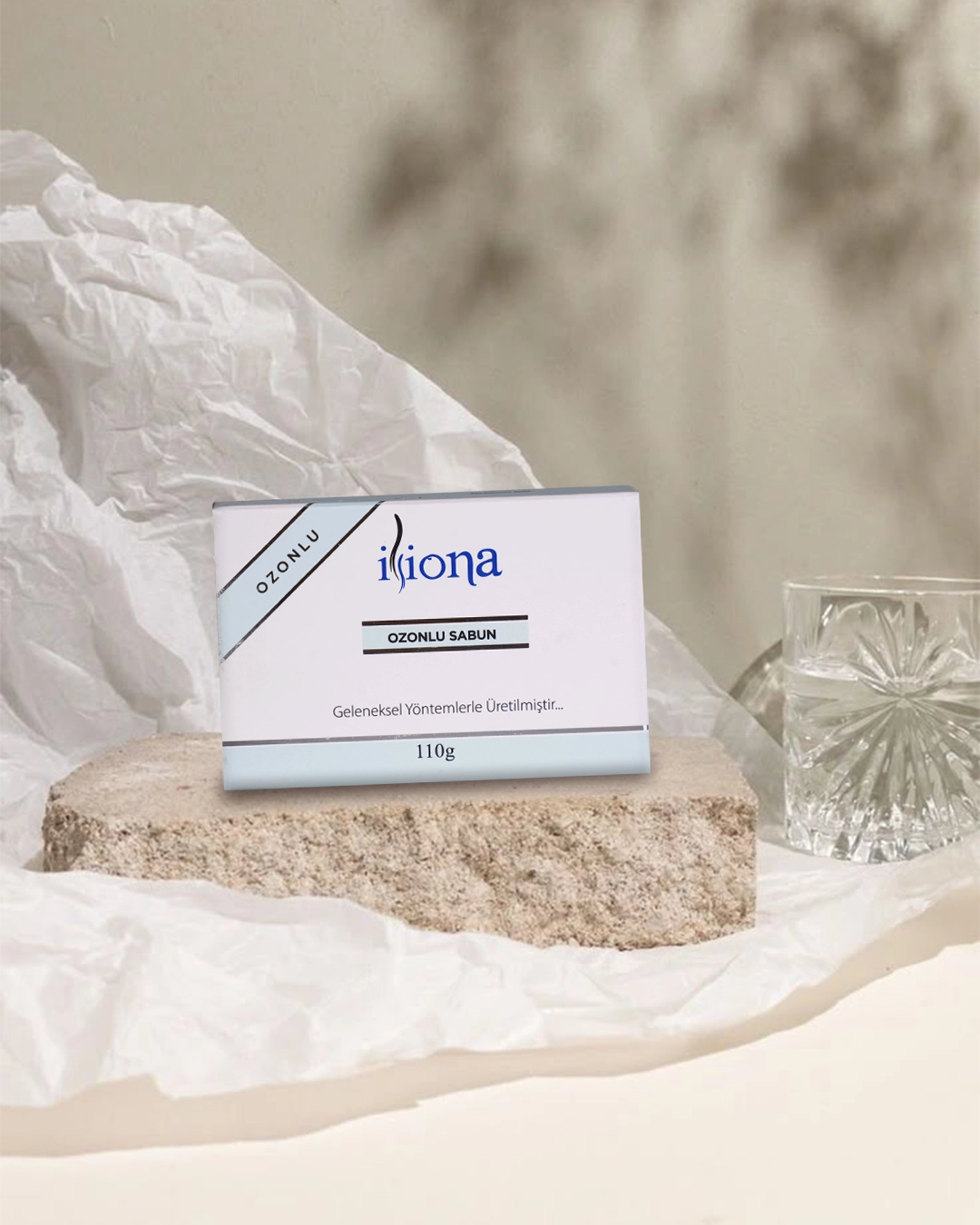 İliona Saf Ozonlu Sabun, 100 gramlık katı sabun formunda sunulur. Doğal içeriklerini koruyabilmesi için kraft kâğıda sarılı olarak veya özel karton kutusunda ambalajlanır. Serin, kuru ve güneş ışığı almayan bir ortamda muhafaza edilmesi önerilir. Sabunlukta suyla uzun süreli temas ettirilmeden saklanması, kullanım ömrünü uzatır.